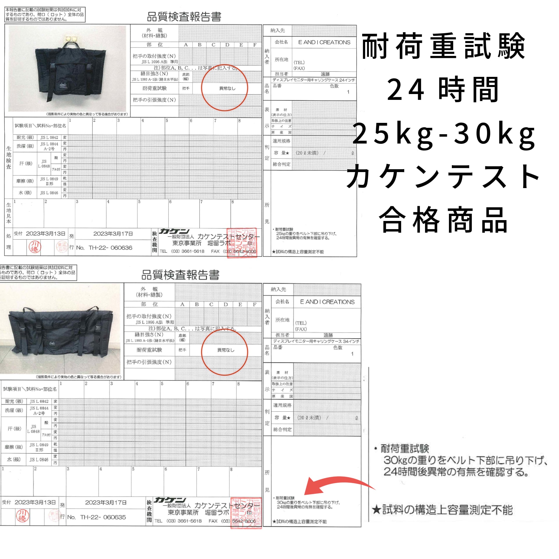◆Materials 表地(Outer Fabric): 100% Nylon 中生地(Interlining): 100% Polyester 裏地(Lining): 100% Cotton or 100% Polyester ◆サイズ(Size)W59×H36×D6cm ◆ケース重量(Weight) 約500g ◆ディスプレイモニター用キャリングケースはゲーミングモニター、PCモニター、テレビモニターなどの薄型液晶モニターを安全に保護しながら運ぶことができます。 ◆各サイズのモニターケースは、1インチのゆとりは設けておりますが、できるだけモニターのインチサイズに合わせてご購入ください。 ◆映像配信現場での作業、eスポーツ、フォトグラファー、オフィスワーク、テレワーク、コワーキングスペース、展示場、公共施設、大学施設、営業活動、イベントなど、あらゆるモニターのある場所でお使いいただけます。管理や運搬、保管に最適です。 ◆表地は撥水加工、裏面にはアクリルコーティングを施したナイロンを、裏地は制電性の高いポリエステルまたは静電気に強いコットンを使用しています。モニターをホコリ、汚れから守ってくれます。 ◆耐荷重 約25~30kg(カケンセンター24時間テスト合格) ◆3つの特徴 ①ベルトで支えハンドルで持ちます。2本のベルトでバランスを取り、サイドはテープで固定化します。ハンドル脇にDカンがついています。 ②ポケットがあり、付属品をなくしません。 ③内側に画面と同じサイズのポケット付きです。ウレタンや緩衝材を入れて使用してください。 ◆【緩衝材素材(オプション)】 厚さ7mm ポリ塩化ビニール ニトリルゴム ◆湾曲モニターにも対応しています。 *21:9のウルトラワイドタイプは別売* ◆サイズはメーカーによって変わります。必ず外寸を測ってください。 *画面の外枠のサイズです(スタンドは含みません)。画面の縁取りが5cm近くあるものや、奥行きが13cm以上のものは、一つ上のインチサイズを選んでください* ◆高さ調整でスライド式になっているもの、モニター画面が縦になるものは本商品では入りきらない可能性があります。 *マチありの商品をお選びください。モニターの型番がわかる場合はお問い合わせください* ◆スタンド(足の部分)のカバーはしておりません。 *スタンドを取らないことを想定して製作しています* ◆この商品は日本国内で製産されています。 ◆Display Monitor Carrying Case Our display monitor carrying case is designed to safely protect and transport slim screens, including gaming monitors, PC monitors, and televisions. ◆Sizing Guidelines While each case size includes a 1-inch (approx. 2.5 cm) margin, we recommend selecting the size that most closely matches your monitor’s screen size. ◆Versatile Use Cases This case is perfect for video production, e-sports, photography, office work, remote work, coworking spaces, exhibitions, public facilities, universities, sales activities, and events. It is an ideal solution for organizing, transporting, and storing your equipment. ◆Premium Materials • Exterior: Water-repellent nylon with an acrylic coating. • Lining: High-performance anti-static polyester or anti-static cotton. • Protection: Guards your monitor against dust and dirt. ◆Durability • Load Capacity: Approx. 25–30 kg (Passed the 24-hour Kaken Test Center durability test). ◆Three Key Features 1. Dual-Strap Support: The case is carried by a sturdy handle, with weight balanced by two main straps and sides secured with fastening tape. Includes D-rings next to the handle for additional attachments. 2. Accessory Pockets: Integrated pockets ensure you never lose your cables or peripherals. 3. Internal Screen Pocket: Features an internal pocket the same size as the screen for inserting foam or cushioning material. ◆Optional Padding Material • Thickness: 7 mm • Material: PVC (Polyvinyl Chloride) / NBR (Nitrile Rubber) ◆Compatibility & Measuring • Curved Monitors: This case is compatible with curved monitors. ○ Note: Cases for 21:9 ultrawide monitors are sold separately. • Measure Before Purchasing: Sizes vary by manufacturer. Please ensure you measure the external dimensions of your monitor. ○ Measure the outer frame of the screen (excluding the stand). If the bezel (border) is nearly 5 cm (2 in) wide or the monitor depth exceeds 13 cm (5.1 in), please choose one size up. • Special Stands: Monitors with sliding height-adjustment stands or those positioned vertically may not fit this standard case. ○ Please select a model with a gusset (extra depth). If you have your monitor's model number, feel free to contact us for assistance. • Stand Coverage: This product does not cover the stand (base). ○ It is designed to be used without removing the stand. ◆Made in Japan