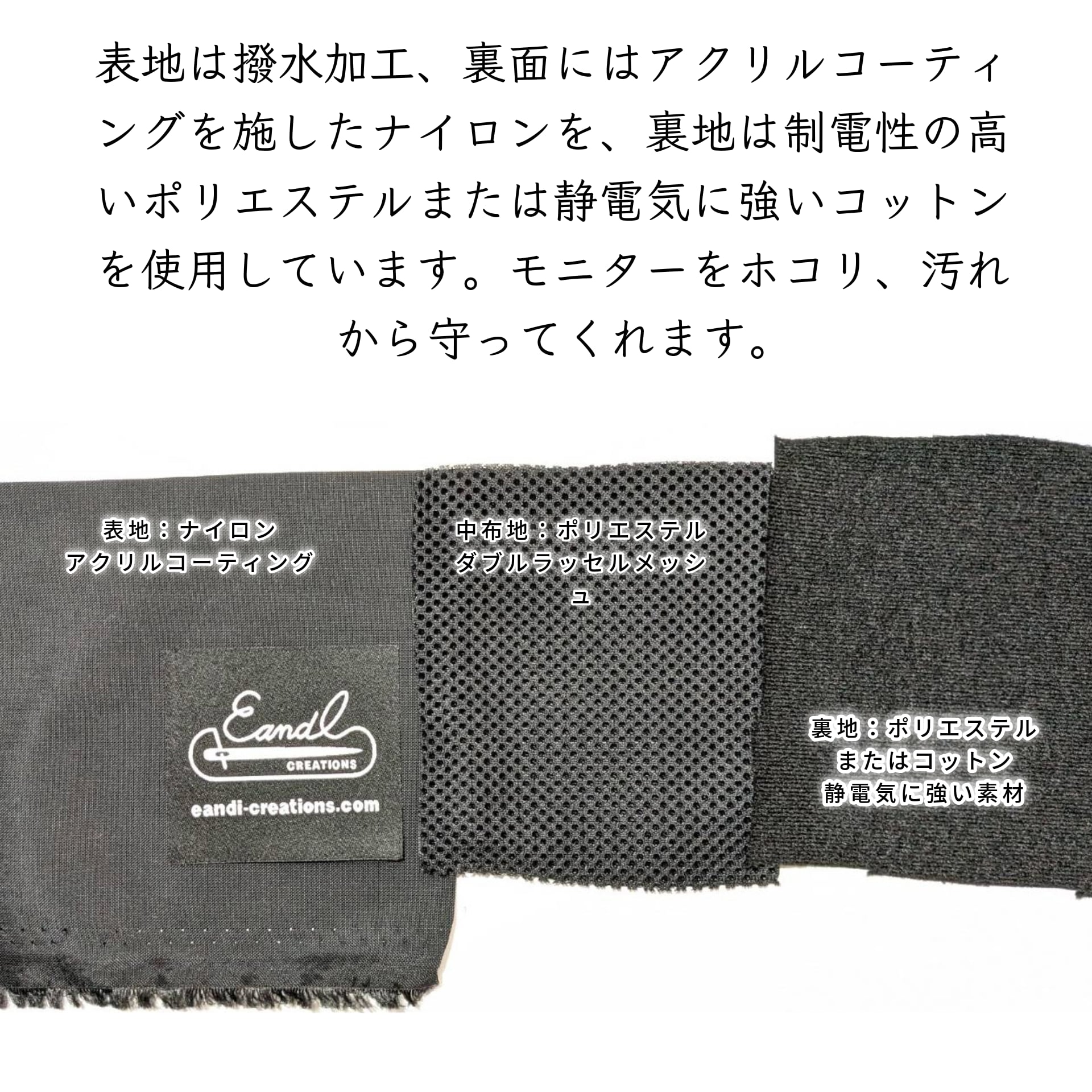 ◆Materials 表地(Outer Fabric): 100% Nylon 中生地(Interlining): 100% Polyester 裏地(Lining): 100% Cotton or 100% Polyester ◆サイズ(Size) W85×H40×D11cm ◆ケース重量(Weight) 約900g ◆21:9のウルトラワイドモニターなど薄型液晶モニターを安全に保護しながら運ぶことができます。 ◆34インチ前後に対応するサイズです。1インチのゆとりは設けておりますが、できるだけモニターのインチサイズに合わせてご購入ください。 ◆映像配信現場での作業、eスポーツ、フォトグラファー、オフィスワーク、テレワーク、コワーキングスペース、展示場、公共施設、大学施設、営業活動、イベントなど、あらゆるモニターのある場所でお使いいただけます。管理や運搬、保管に最適です。 ◆表地は撥水加工、裏面にはアクリルコーティングを施したナイロンを、裏地は静電気に強いコットンを使用しています。モニターをホコリ、汚れから守ってくれます。 ◆耐荷重 約25kg〜30kg(24時間テスト合格) ◆3つの特徴 ①ベルトで支え、ハンドルで持ちます。4本のベルトでバランスを取り、サイドはテープで固定化します。 ②ポケットがあり、付属品をなくしません。 ③内側に画面と同じサイズのポケット付きです。ウレタンや緩衝材を入れて使用してください。 ◆湾曲モニターにも対応しています。 ◆【緩衝材素材(オプション)】 厚さ7mm ポリ塩化ビニール ニトリルゴム ◆モニターの奥行きが25cm以上、または、湾曲が大きいタイプ本商品では入りきらない可能性があります。 *モニターの型番がわかる場合はお問い合わせください* ◆スタンド(足の部分)のカバーはしておりません。 *スタンドを取らないことを想定して製作しています* ◆この商品は日本国内で製産されています。 ◆34" UltraWide Display Monitor Carrying Case This specialized carrying case is designed to safely protect and transport 21:9 UltraWide monitors and high-performance gaming monitors. ◆Sizing & Fit • Recommended Size: Optimized for monitors around 34 inches. • Guidelines: While the case includes a 1-inch (approx. 2.5 cm) margin, we recommend selecting the size that most closely matches your monitor’s screen size for the best fit. ◆Versatile Use Cases Ideal for video production, e-sports, photography, office work, remote work, coworking spaces, exhibitions, public facilities, universities, sales activities, and events. It is a perfect solution for the organized management, transport, and storage of your equipment. ◆Premium Materials • Exterior: Water-repellent nylon with an acrylic-coated backing. • Lining: Anti-static cotton to prevent static build-up. • Protection: Shields your monitor from dust and dirt. ◆Durability • Load Capacity: Approx. 25–30 kg (Passed a rigorous 24-hour durability test). ◆Three Key Features 1. 4-Strap Support System: The monitor is supported by four straps to ensure perfect balance, carried by a sturdy handle, and secured on the sides with fastening tape. 2. Accessory Pockets: Includes integrated pockets to keep cables and peripherals organized and prevent them from being lost. 3. Internal Screen Pocket: Features an internal pocket the same size as the screen area, designed for inserting urethane or other cushioning materials. ◆Optional Padding Material • Thickness: 7 mm • Material: PVC (Polyvinyl Chloride) / NBR (Nitrile Rubber) ◆Compatibility & Measuring • Curved Monitors: This case is compatible with curved monitors. • Important Fit Note: Monitors with a depth of 25 cm (approx. 9.8 in) or more, or those with an extreme curvature, may not fit in this case. ○ If you are unsure about the fit, please contact us with your monitor's model number. • Stand Coverage: This product does not cover the monitor stand (base). ○ It is designed with the assumption that the stand will remain attached during transport. ◆Made in Japan